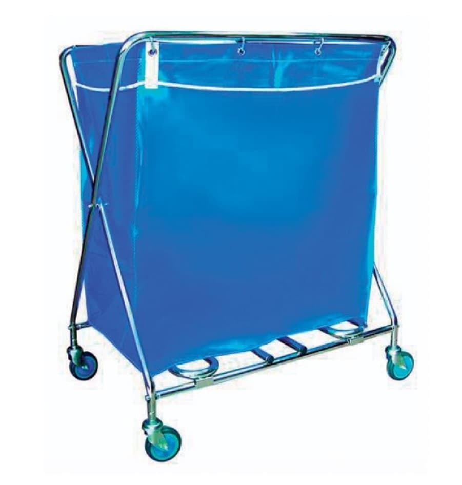 Carro plegable, chasis cromado, bolsa plastificada azul con cuerda de fácil manejo, ruedas de 100 mm. de diámetro. Se fabrica de acero inox. 18/8